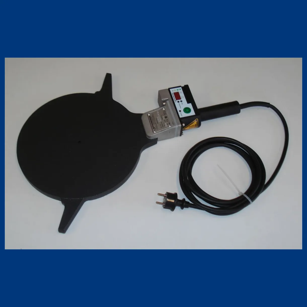 Rothenberger Welding mirror digital display and electronic temperature control. On / off switch with light. LEDs for standby and heating. 1500W. Weight 5.4 kg. Fits Roweld P250B butt welder