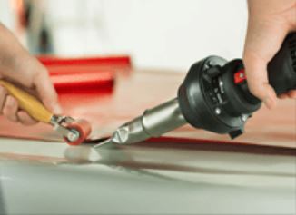 QUICK-L-electronic - Built-in fan. The outlet pipe measures 31.5 mm. and fits with a large number of air nozzles. Welding temperature from 20 ° C to 700 ° C is infinitely adjustable on the rotary knob via the electronics. 230 V 1500 W.