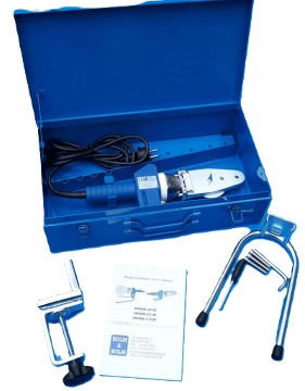 Type HHSW-63-W electronic digital with interval control lamp, for socket mandrels up to OD 63 mm. 800W. Working temperature 201 - 279 ° C. Net weight 1.8 kg. Included: bolts and key. Table stand and table holder. Steel box with seats for socket mandrels. Exclusive Spigot and Socket