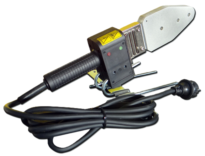 Polywelder supplied in cardboard box with support and clamp for ground and bench. Welding capacity: Ø 16 - Ø 63 mm.