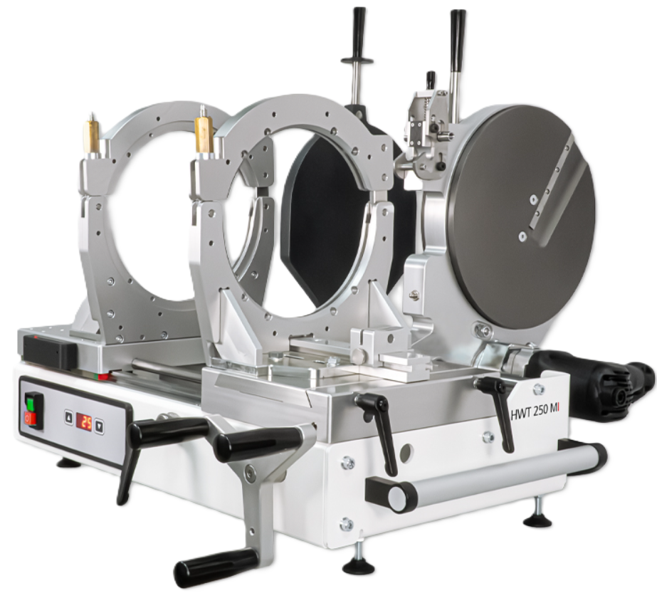 HÜRNER HWT 250 MI for manufacturing PE, PE 100 RC, PP, and PVDF1) pipes, segmented bends, and fittings.