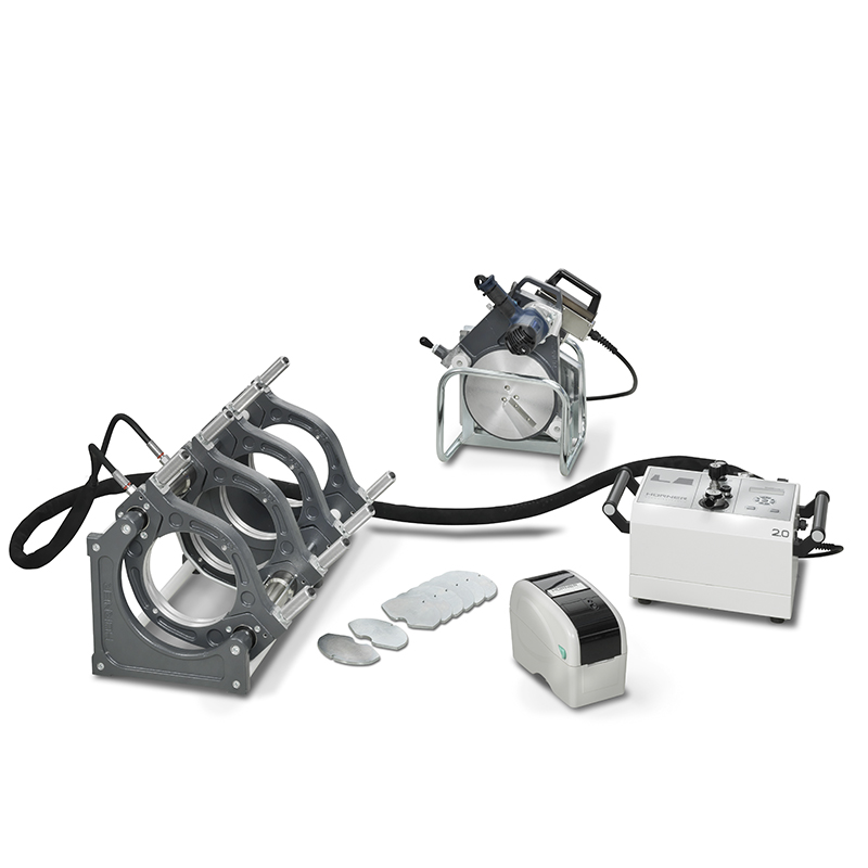 Butt welding machine, Hürner 200 mm, Weldcontrol 2.0 incl. Planer, mirror, pressure characteristics incl. reductions size 63 75 90 110 125 140 160 180 mm.