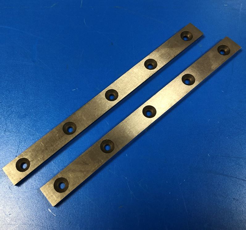 2 pcs. planer knives, reversible. 200 x 16 x 5 mm. 5 holes with hole spacing 43.25 mm.