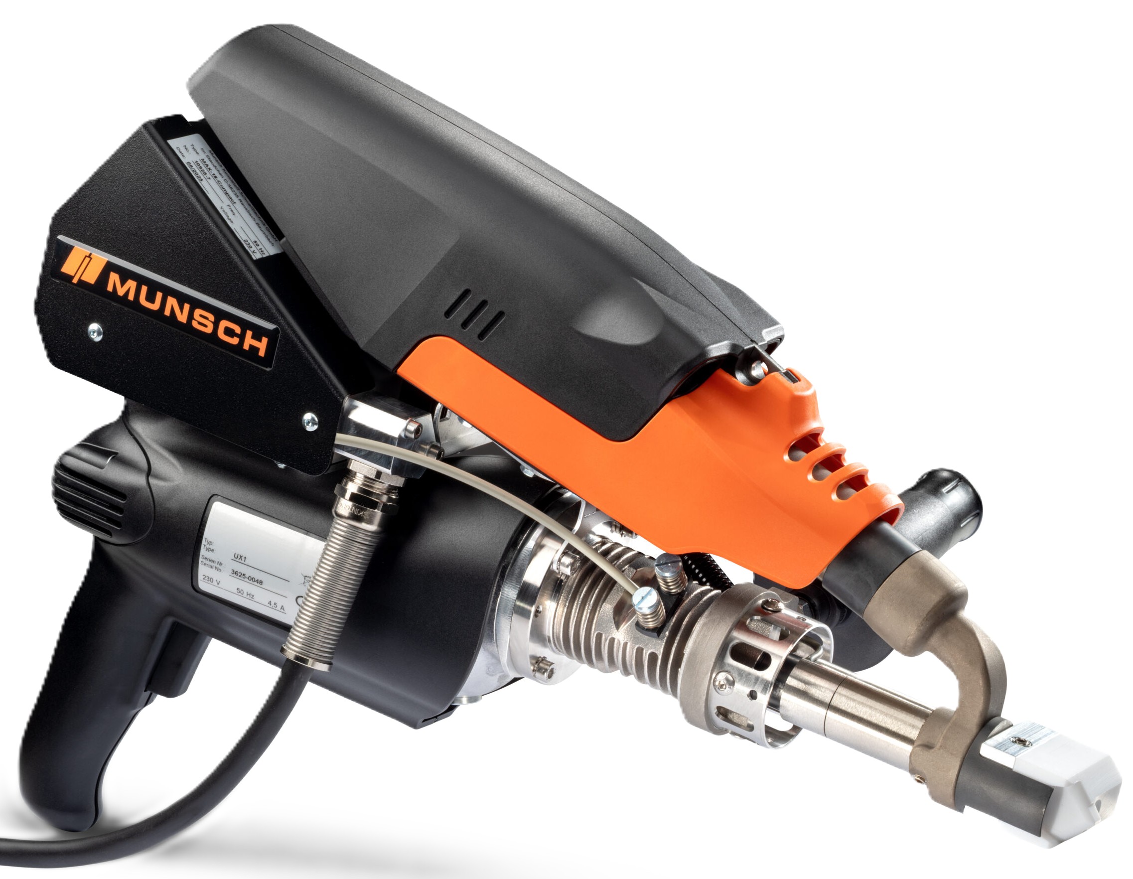 Our shortest version of the MAX extruders. With a total length of just app. 450 mm and a side-mounted power cable, it's ideal for even the tightest spaces. Almost as light and quiet as the MAX-18, it also features a 360° rotating welding shoe and a continuously adjustable handle. With this digitally controlled extruder, you can effortlessly weld material up to 15 mm or even 20 mm thick. Integrated high-performance LEDs ensure good illumination in the work area. When not in use, the device goes into standby mode, significantly reducing noise levels and saving up to 50% energy. Once the device has completely cooled down, the fan switches off completely.
