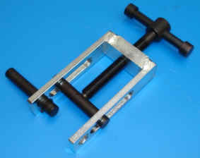 Clamping tool - manual pipe clamp, (threaded spindle) 20 to 32 mm. without fixed stops. Total height closed and open 155/190 mm. Width of clamping fork out and inside 62/50 mm. The lower boom can be pushed to the side without it being dropped.